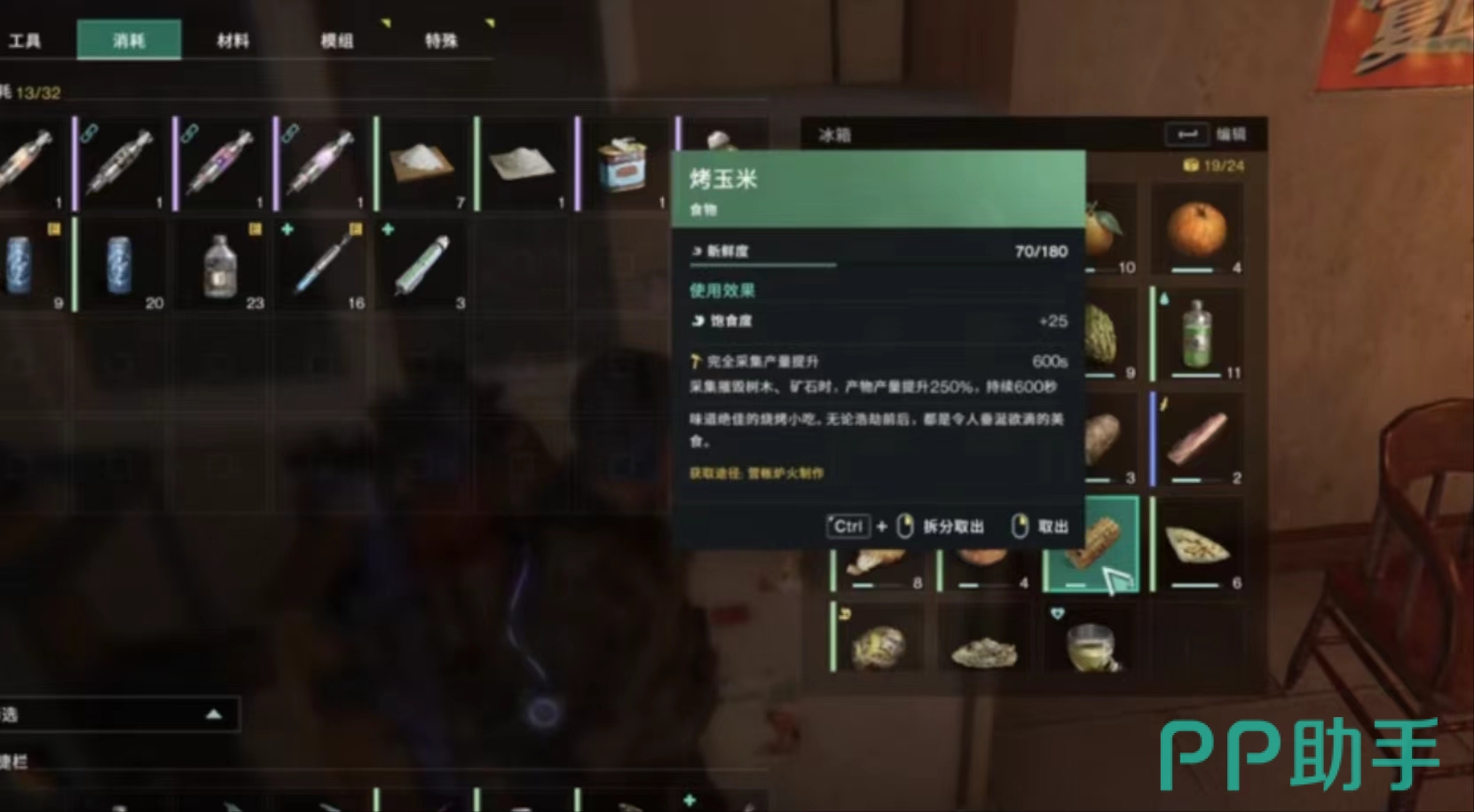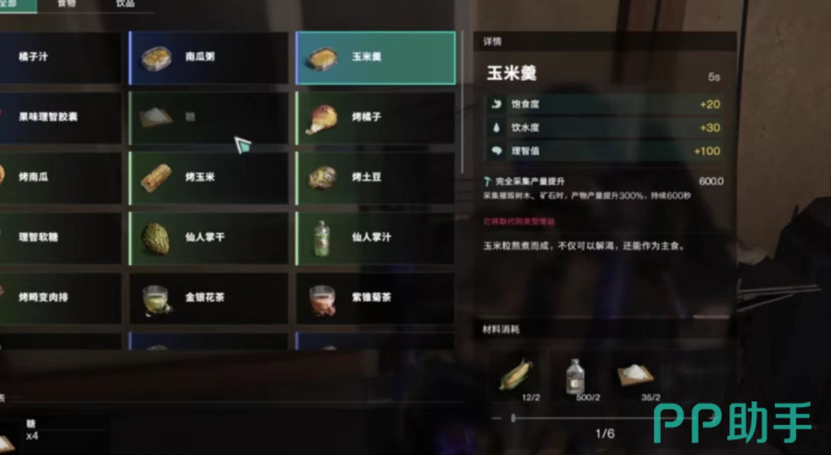 小伙伴们想要采矿效率更高。那么就需要使用到游戏中的食材。分别是玉米羹,还有烤玉米。仅为玩家们增加食物buff,还有饮品buff。玉米羹需要糖来作为材料所以玩家在前期种植可以种植甜菜与米利用甜菜制成糖。来增加我们的食物与饮品buff。如果没有增加这些buff,通常情况下每一斧这个的对于钨矿的攻击为3,但是增加饮品buff还有饮品 buff后。最后的攻击可以达到最高18。攻击力翻倍,翻了6倍。当然这些效果也可以用于采集木头以及石头等资源。
