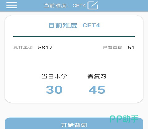 如果你已经上大学了,又或者说英语水平非常高,这时候就可以用这个软件学习英语四六级。还能根据自己的水平选择相关难度,一般来说每天都要背诵练习多个单词。还能够选择想要挑战的单词数量,开启挑战之后,可以让你每天训练都达到100个单词,还可以重复训练。