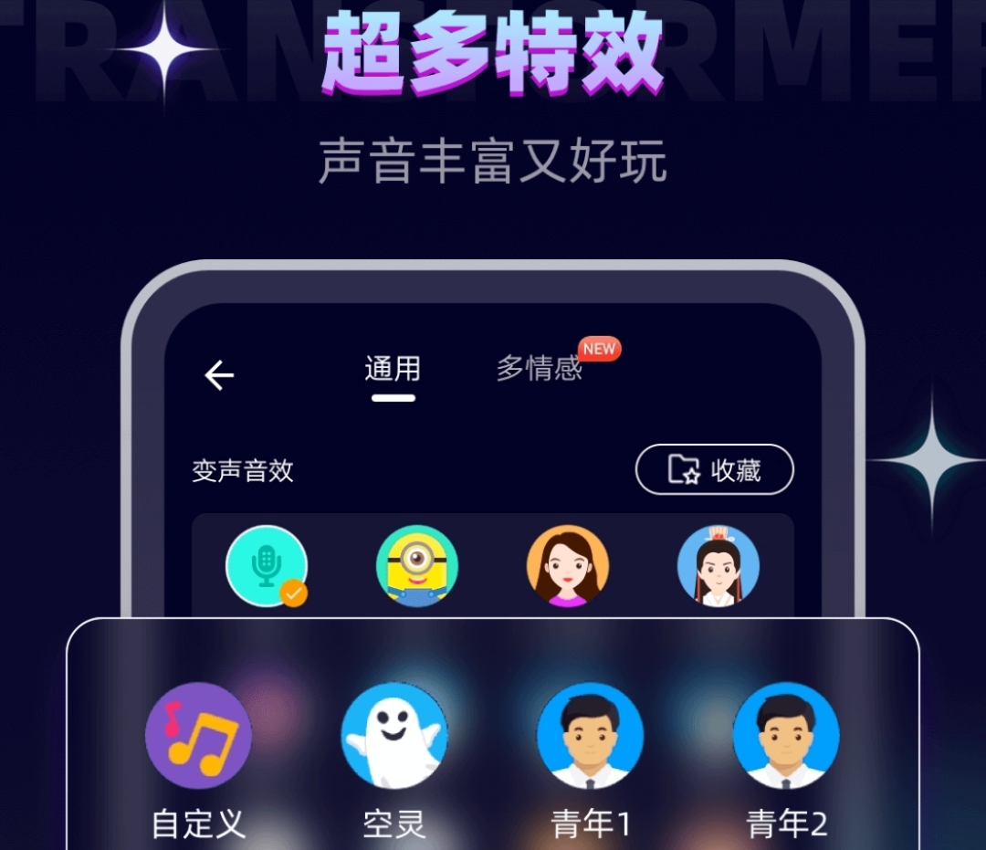 软件内置超多语音包,音色包括男生女生童声老人声音等,你还可以自定义音效,各种新奇趣味的音效随你用,比如氦气、巨人、外星人、机器人等,以及很多模拟场景的音效,让你和朋友的聊天更有意思。