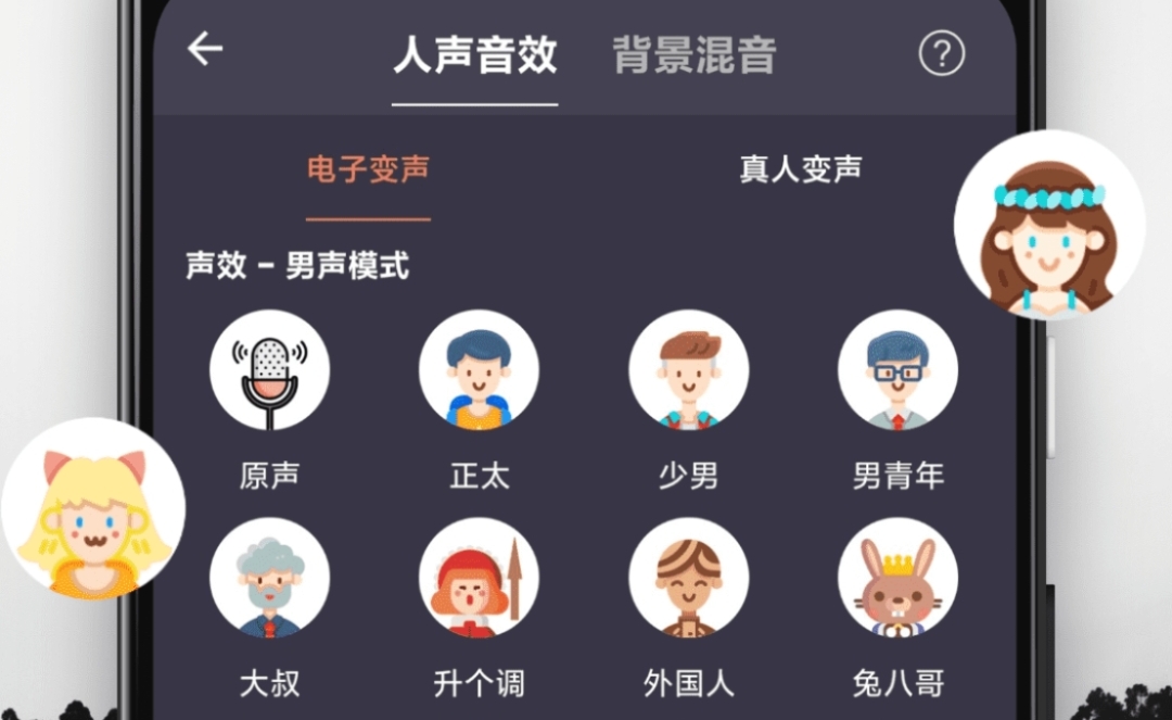 拥有百变语音包,有偶像明星、卡通动漫、网红主播等各样资源,其中还有吃鸡、王者专用的语音包,打游戏的时候交流就非常方便了。“专业变声器”中还有各种音效,可进行背景混音,满足用户不同的使用需求。