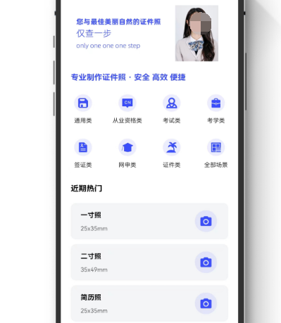 简单易用,一键生成智能证件照的app有着多样化的规格,满足不同证件的需求。自然美颜轻松过审,操作非常智能,冲印便捷,有各种特色功能,需自己查询尺寸或者剪裁尺寸,只要直接在线冲印即可快速完成,省钱又方便。其中包含多种不同的类型,比如一寸二寸,满足身份证、医保证、社保证、签证等多种不同的证件需求。