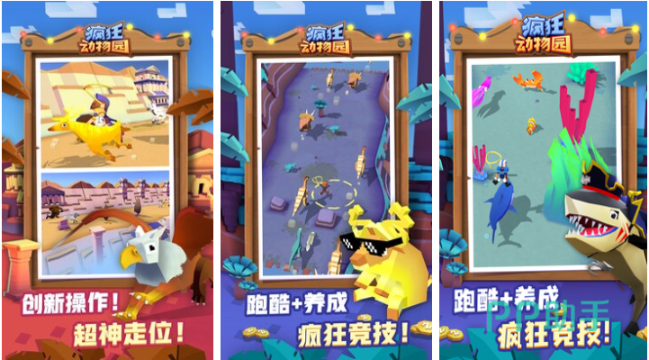 疯狂动物园是款小动物题材的竖屏俯视角跑酷类游戏,精致的像素画风加上跑酷养成的玩法让人沉浸不已,各种各样的像素小动物形象颠覆了大家的认知,小象、小恐龙都会成为你的坐骑陪你一起狂奔,创意十足的玩法以及简单的操作也让本作名声大噪,十分魔性的BGM和紧迫感十足的游戏节奏让本作更具魅力,跑酷游戏迷或者经营游戏爱好者快来玩玩吧。