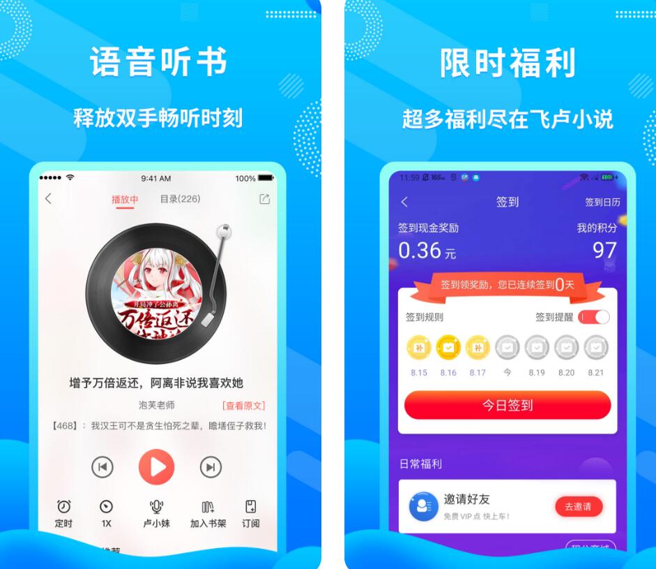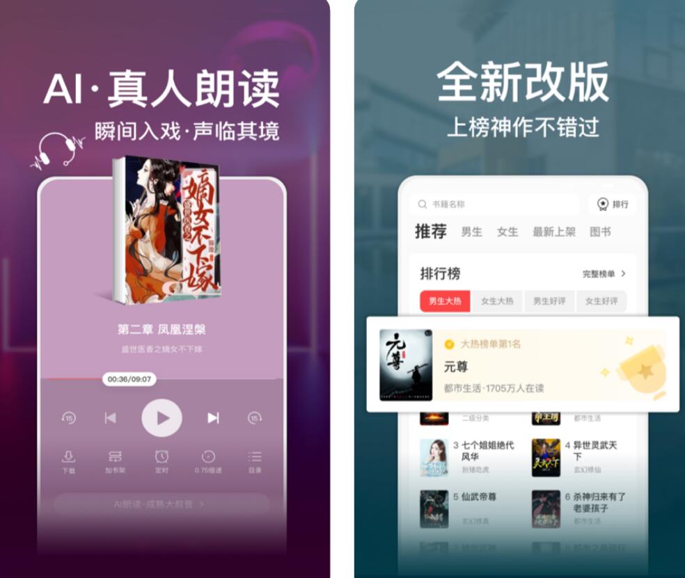 经过改版之后,系统界面变得更加简洁,每天平台都会根据你的阅读习惯,为你推荐刚刚上线的新书,或者热度较高的书籍。软件还会记录你的读书的进度,避免你错过精彩章节,近期还新增了听书功能,用户可以选择一个喜爱的音色,去让系统为你读书。