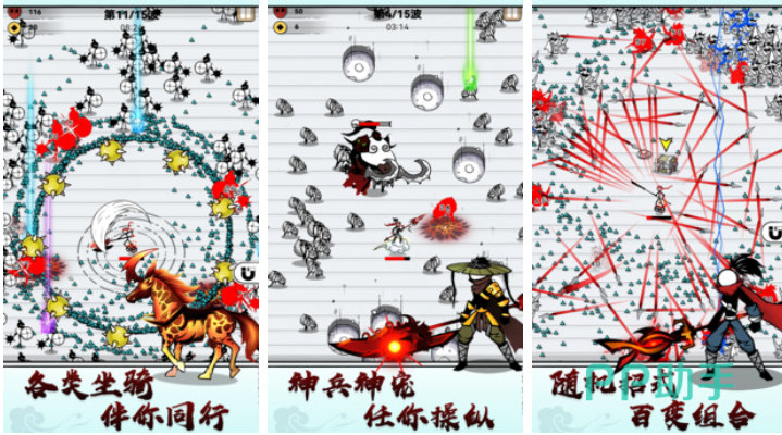 如果你想玩一款解压爽快的割草类游戏,那么就可以试试纸上弹兵这款火柴人系列游戏了,游戏的背景画面和角色塑造都非常完美,黑白分明的地图以及帅气的角色形象很有辨识度,各种神兵利器和帅气的坐骑让玩家们大开眼界,随机搭配的招式让战斗画面变得更加刺激,超级解压的战斗过程让人心旷神怡。