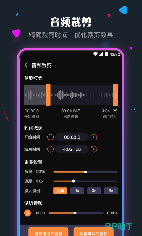 在这个软件中系统会智能提取手机中的音频文件,并且软件可以从视频中提取音频来进行编辑,软件中和还有剪辑功能,小伙伴们可以对音频文件进行倒放与变速。