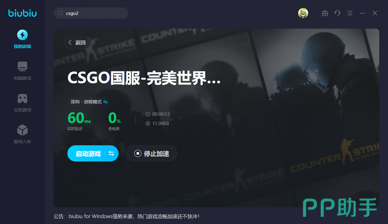 CSGO游戏和大部分枪战游戏玩法都是一样的,他还是这类游戏中的鼻祖,但是操作难度却是玩家公认的,很多情况下玩家的技术在其他枪战游戏中能够混的风生水起,在CSGO中却发现连枪都压不住,因此玩家技术都需要慢慢提升。掉帧导致的问题非常严重,枪战游戏中影响更深,大大降低了玩家做出反应的速度,而且高手之间的对枪都不需要一秒就能决出胜负。能够解决掉帧问题的软件小编推荐使用biubiu加速器。