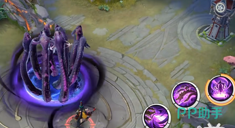 3技能会召唤一个球体,当玩家靠近后会进行引爆,引爆以后会生成小蛇持续地攻击范围内的敌人,属于一个消耗能力较强的技能,大招选择一个位置直接化生超级大蛇,对附近的敌人造成伤害以及击退。
