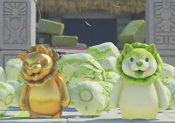 顾名思义白菜狗整体采用的是一个白菜的设计,这次的皮肤也是给了游戏中非常有代表性的黄色柯基【尼莫】,狗狗的头部周围会出现一圈绿色的菜叶,而且看起来非常像是狗狗偷穿了白菜款式的演出服,非常的可爱!