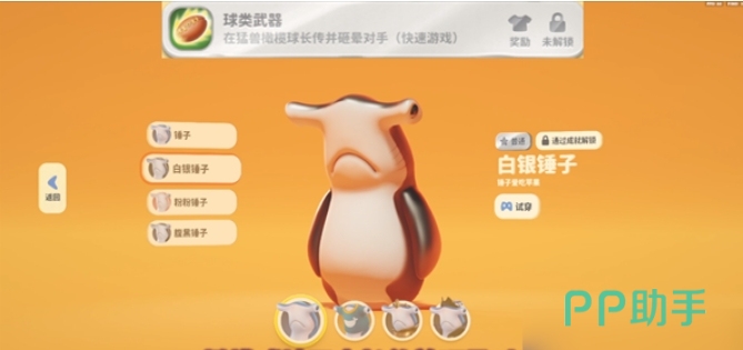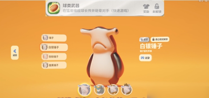 球类武器这个成就大家可以拿到白银锤子的这个皮肤,在大家参赛的时候只要在上面使用了橄榄球作为武器,并且在上面利用橄榄球来加敌人给砸晕就可以达成成就。