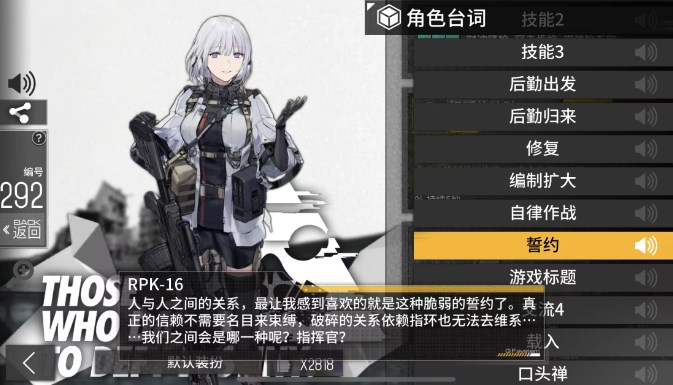 所以即便是无法捏脸,但玩家依旧可以选择自己的性别去代入其中。玩家可以给指挥官设定名字,这样在剧情对话的时候,你的名字显示在聊天框的左侧。当然人形并不会根据不同的名字来切换不一样的语音,而是大多时候以“指挥官”来称呼你。