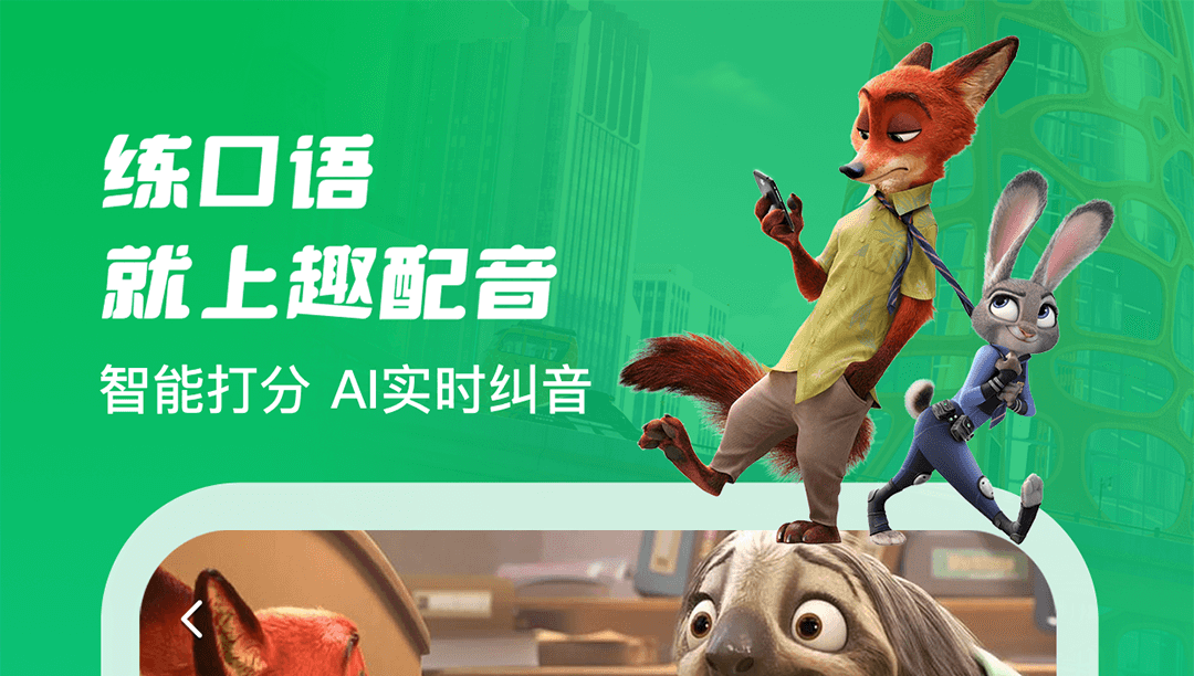 这里每天都会更新一些海量的精品英语教学视频,而且你也可以通过打卡的方式每天都进行学习,这样就不用担心学习到中途就放弃。并且当你学会这些英语之后,你也可以为一些卡通视频或者其他类型的内容进行配音。那更加有趣一些,这样也能算是学以致用,然后还可以全方面的训练你的听说读写能力。
