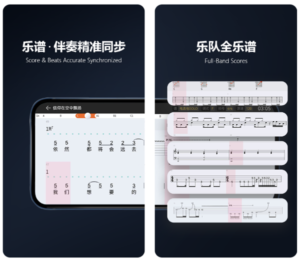 这款软件其实比较适合一些乐队来使用,不仅是带有高自由度的制谱功能,更是可以根据乐队的多乐器特点将曲谱按照不同乐器部分进行分割和优化,让演奏变得更加轻松。