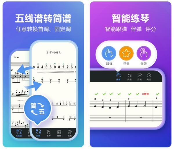 以五线谱练习为核心的一款乐谱软件,适用于钢琴、吉他、尤克里里等诸多乐器。软件中为我们加入了曲谱转化功能,可以选择简谱和五线谱的互转,更是可以识别导入曲谱。