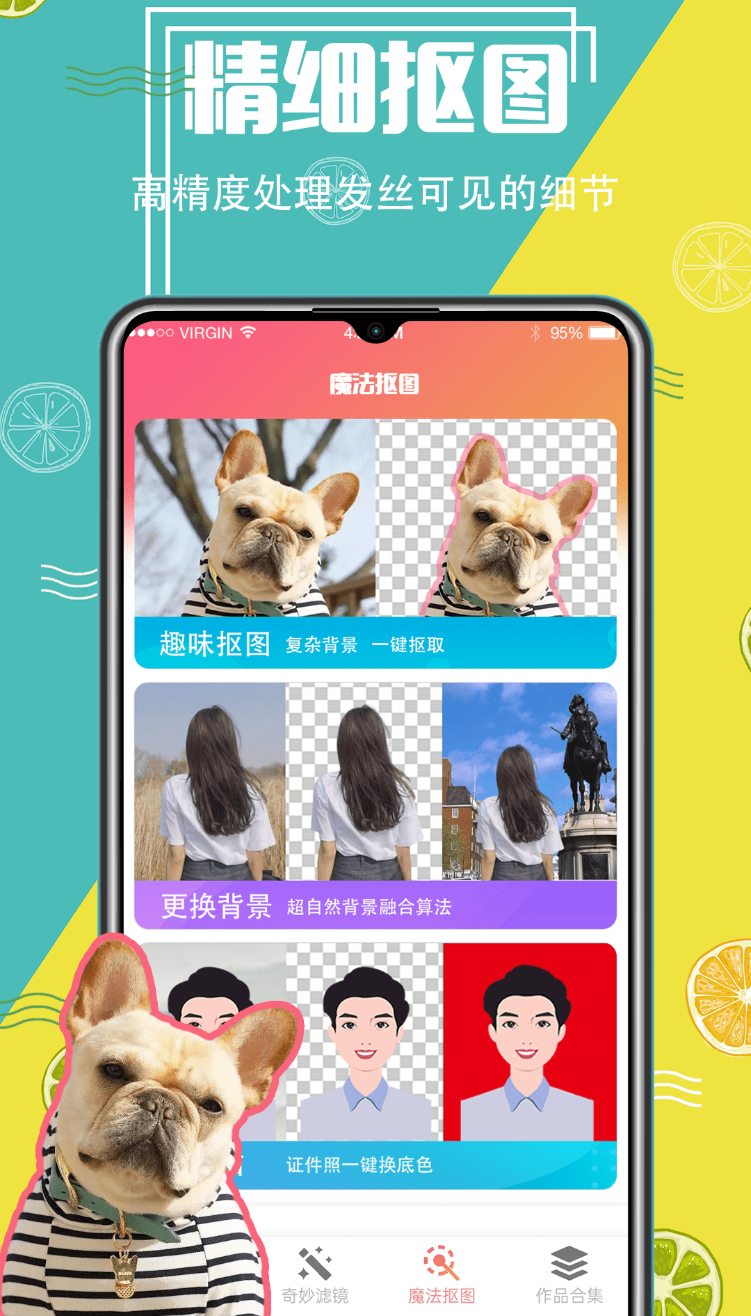 新一代的抠图修图软件,人工智能AI帮助大家快速选定你想要抠出的部分,然后点击抠图就可以完成,整个过程只需要两步,而且你自己操作的也很少,还可以添加一些复古或艺术的滤镜。