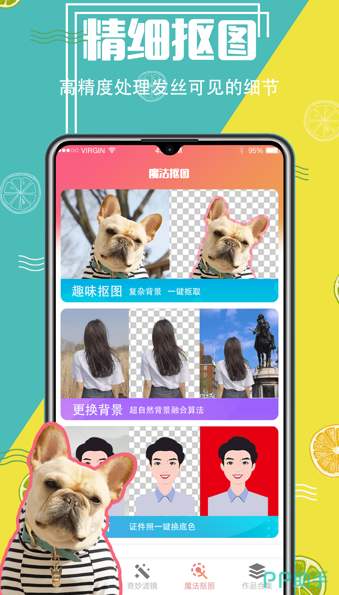 专业的P图和抠图软件,抠图工有两种方法分别是人工抠图和智能抠图,抠出的部分和你直接导入到软件当中的图片都可以进行简单的编辑,比如更换一个好看的滤镜和添加一些唯美的文字。
