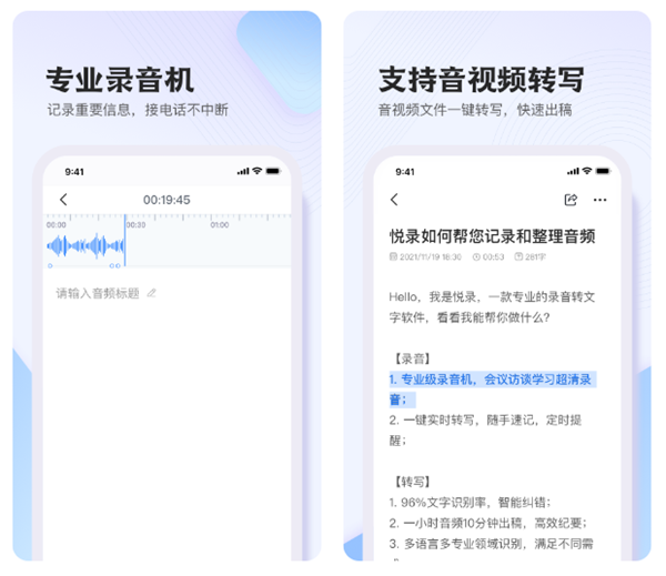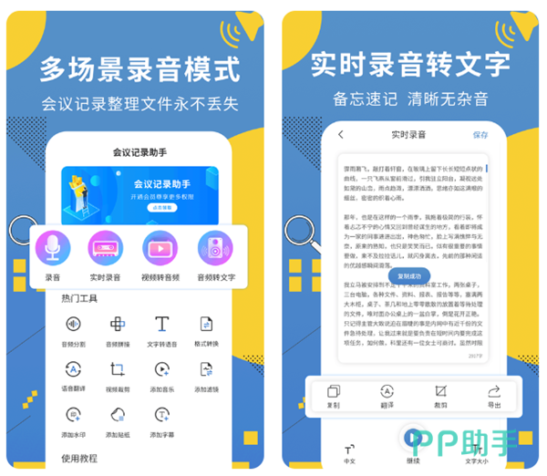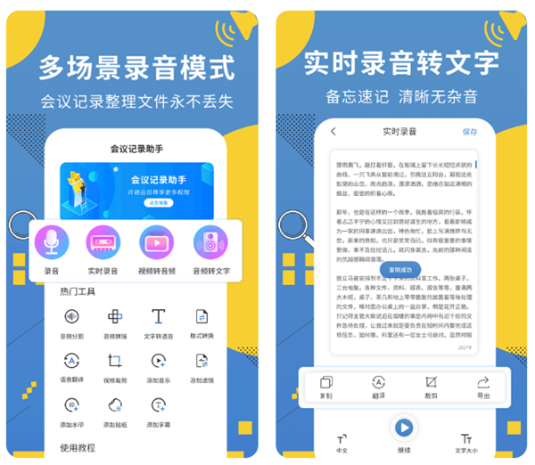 这款软件可以轻松读取附近的声音内容,而且还会自动根据音色来进行不同角色的识别,可以广泛应用于视频文案识别、会议记录等。软件同时也会对声音进行录制,效果也十分清晰。