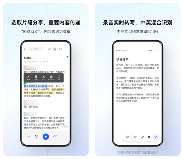 专为解决会议文字记录而生,可以自动识别发言人音色以及停顿从而自动完成角色标注以及排版,让我们能够一键生成会议记录,十分方便。软件还会将会议过程的声音清晰录制下来,很靠谱。