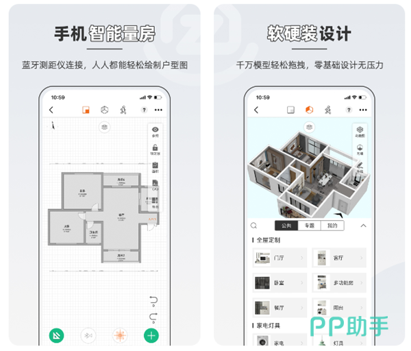 一款注重DIY的装潢设计工具,集成了专业的户型绘制功能板块,通过在线量尺和数据填入就可以迅速绘制出准确的户型图纸,更是能够运用软件自带的素材库进行细节设计。