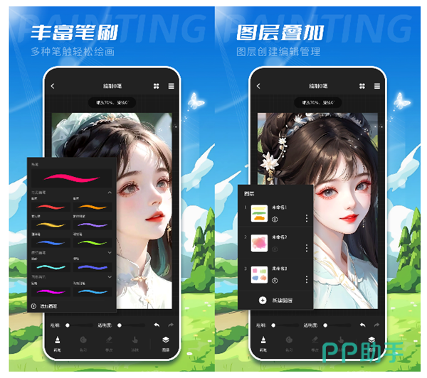 多图层绘画的模式让我们可以分阶段去完成操作并且在后期修改的过程中提高精准度与效率,软件的色域非常广泛,可以简单找到符合我们要求的颜色,更是可以直接在作品中插入文字或印章。