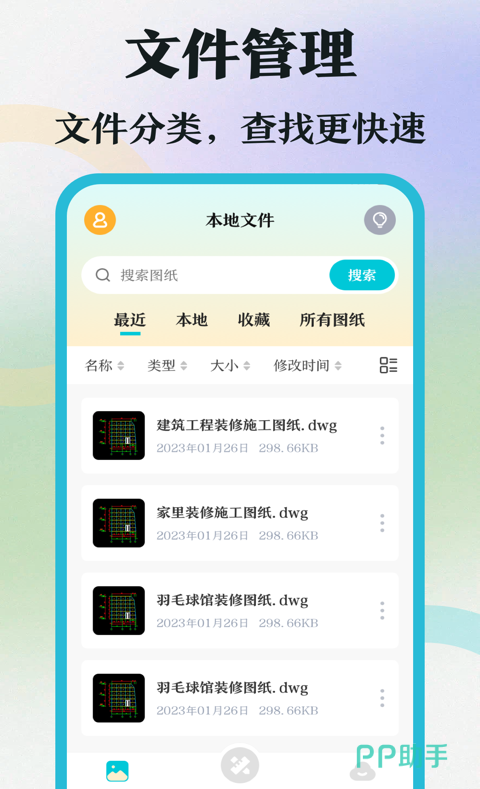 对你所有设计过的图纸进行批量管理和整理,CAD制图当中的所有小操作和小功能你都可以用,图纸模板一键就可以收藏或者下载,像你从QQ或者微信接收过来的文档信息或者图纸也可以直接查看。