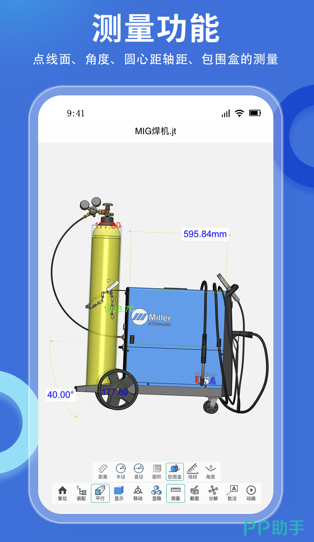 能够对一些点线面的距离进行测量,也可以把你从其他平台上收到的3d图形或者图纸进行拆分浏览查看,这样你才能够对它的整个细节进行一个认识和了解,批注功能也很实用。