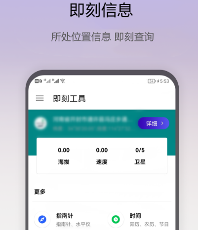 利用虚拟定位,可更改当前所在的地理位置,达到娱乐活跃氛围等一系列目的,利用这款软件完成个人需求。虽然这并不是非常专业的定位软件,但其中有虚拟定位功能,其中的工具较为丰富,这是安全又免费的工具类应用,目前拥有几十万用户都在使用。功能较为丰富,可直接浏览坐标、海拔、速度、地址,另外还有指南针、气压、温度、湿度等各种相关信息,可实时展现网络数据以及当前的时间信息。
