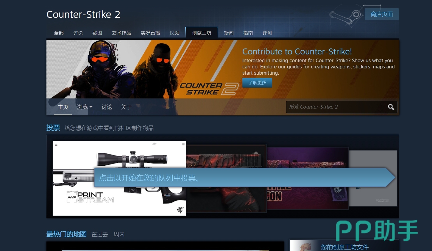 首先是创意工坊的位置,玩家们只需要登录自己的steam账号,找到cs2的游戏界面,在下面菜单一栏就可以看到创意工坊了。也就是在游戏主界面,下面dlc点数商店讨论区指南的后面就能找到我们的创意工坊。点击进入即可打开,这里就可以了解到游戏社区其他玩家制作的创意工坊物品。使用方面也非常的简单,找到自己喜欢的创意工坊模组,点击进入就可以了解到这个模组的相关内容,支持版本提供者是谁,以及一些关于模组用途的详细介绍。要想使用的话,只要点击标题,旁边的订阅加号即可。之后订阅成功,下载所需模组就可以直接在游戏当中使用了。