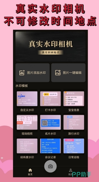 拍视频,拍照片都可以加上水印,非常专业的水印相机,防止其他人修改,放上水印是为了证明视频的真实性,小伙伴们可以在里面自由拟定水印的图案,不喜欢的水印也可以一键消除。