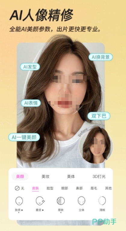 据说,在这里能照出美丽的相片来,新主题全新上线,新主题,新背景,新的审美,给人不一样的视觉感,美颜相机可以进行AI人脸识别,能够让妆容和脸的轮廓更加精致,如有修错的地方,可以利用去除水印的方式,给去除掉。