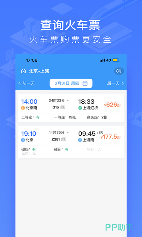 拼多多这款软件也开通了相应的购票入口,这个消息也是小编的同事告诉我小编的,相比于市面上主流的购票平台,在这个软件上购买高铁票会让人有一种极简的感觉,不会有太多复杂的东西所干扰,会让整个购票过程更加的纯粹,只需要搜索相应的车次,如果票务允许的话就能简单地进行在线支付非常的方便。