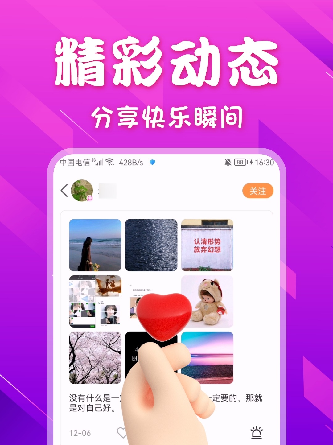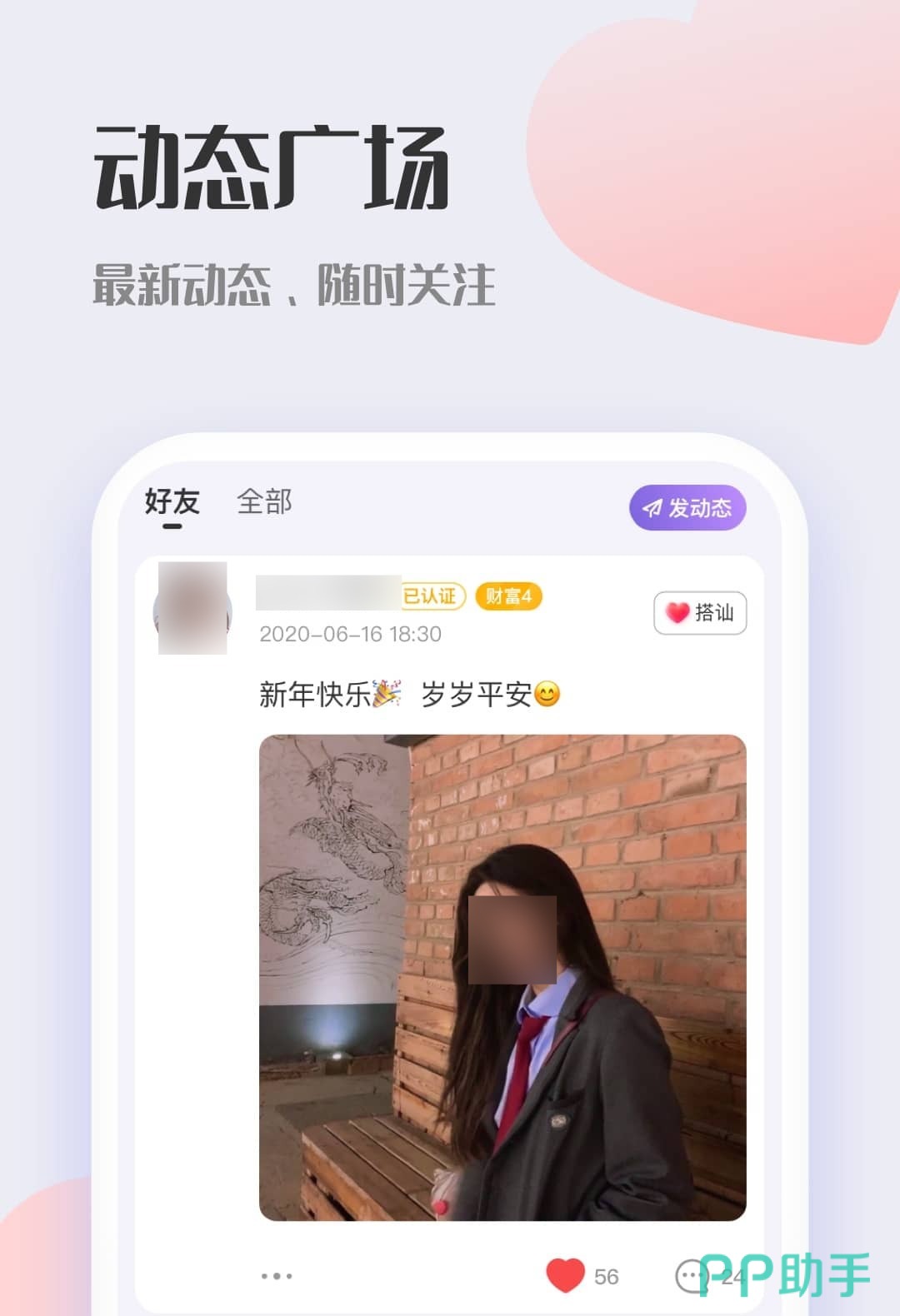 这个软件上为广大的用户提供结识的可能性,不过想要在软件上进行注册登记需要经过严格的审核,经过审核后才能成为软件的用户,这样能保证用户的安全性。通过软件能在广场上查看到关注好友的动态情况。