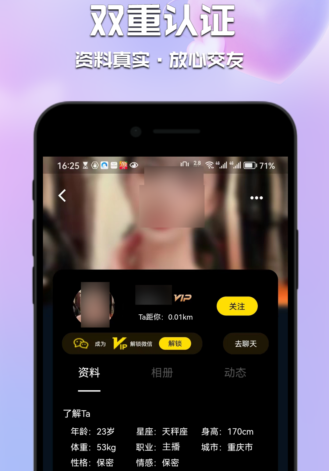 在这个软件上的交流收到软件设计上的严格保护,确保双方的信息受到保护不会泄露。同时软件上提供即时通讯功能,能让双方随时随地都进行交流,而且这个软件上的用户都是高颜值的群体。