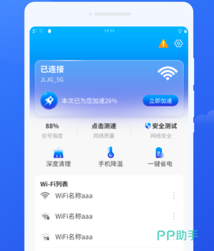 如果担心手机流量不够用,但是又随时随地想刷手机,那么下载这款软件,打开该软件走到任意地方,只要有无线网都能为你轻松的进行连接,还可看到分享的热点,不用担心连接到一些不安全的网络。拥有手机降温、一键省电功能,深受用户的好评。