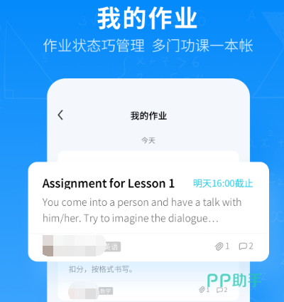这是由腾讯所打造的平台,专门为学生老师所提供,提供比较齐全的模式,让老师和学生提交作业,发布作业时享受一站式便捷之处。老师可在这里发布作业批改检查作业,学生可在线提交。支持上传文档、音频、视频、图片等一系列教学资料,老师可在线打分,在线批阅,帮助班级查看每位学生的作业完成情况。