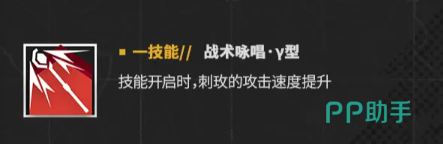 技能方面,目前刺玫公开的技能主要有两个,第一个是战术咏唱·Y型,这一技能的效果非常简单纯粹,只要开启,那么刺玫的攻速就会得到提升,初期提升的数值并不算高,不过随着你对刺玫的培养,后面她的攻速提升会越来越多,而且这招几乎算是一个状态技,所以开启的成本和开启的间隔都非常低,某种程度上来看,因为有了这招所以刺玫的输出频率始终都维持在一个超高的水平。