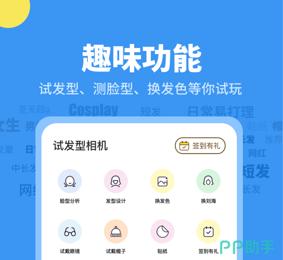 这里拥有许多趣味的测试发型功能,例如更改你的头发颜色。之外还能够通过拍照的方式智能分析你的脸型,还可以用软件上自带的功能试着带一些眼镜或者不同类型的帽子。可以加入一些有趣的贴纸,这样就能够成为一个头像。让你不用剪头发就可以获得新造型。
