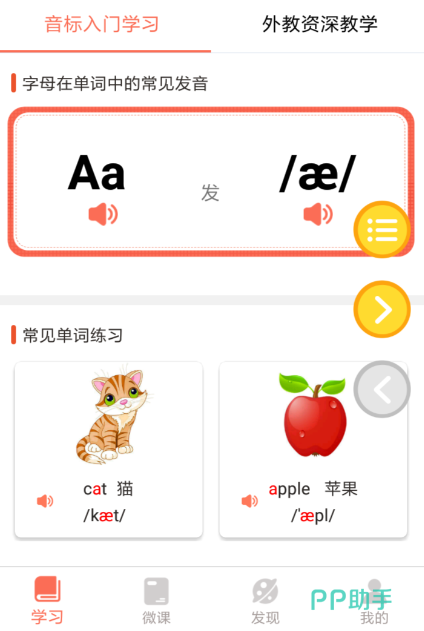 学习英语音标的小伙伴们可以在此软件中免费观看课程,可以没有负担的享受学习资源。大家可以通过软件的音标对比功能,在自己发音与标准发音进行对比,同时也加深了对发音的理解。大家通过软件内的辅助功能解决在学习音标过程中经常混淆相似音标的问题,再根据自己的短处进行专项训练。