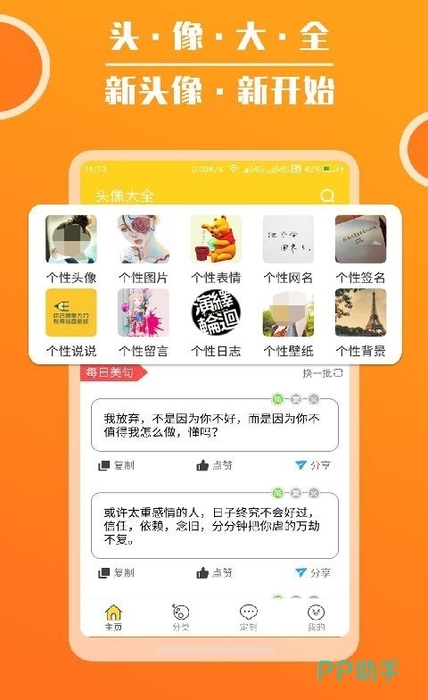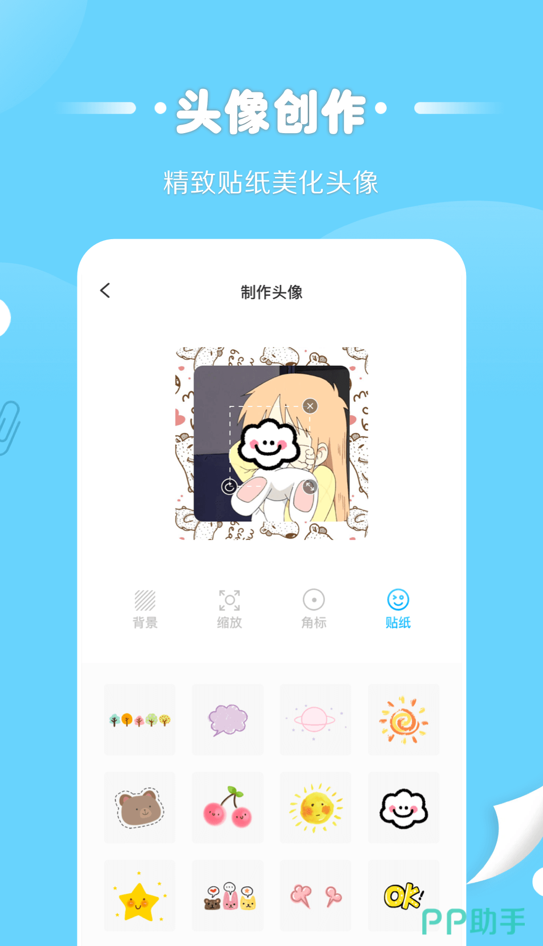 各种精品海量的头像你都值得拥有,200多个主题表情包你都可以运用,清潮、个性、贴心和可爱等等的风格,分类标签都非常的清晰明确,随意调节头像尺寸的大小以及比例。