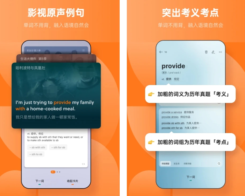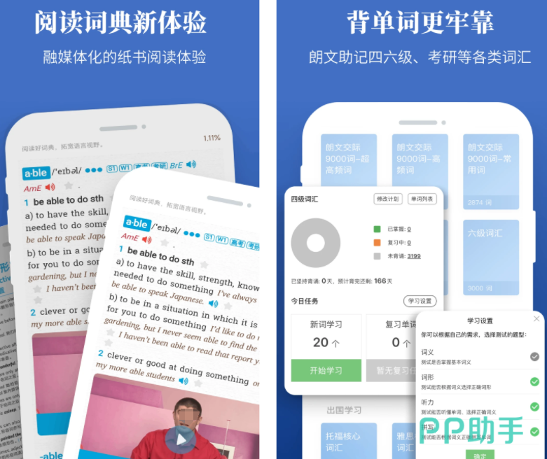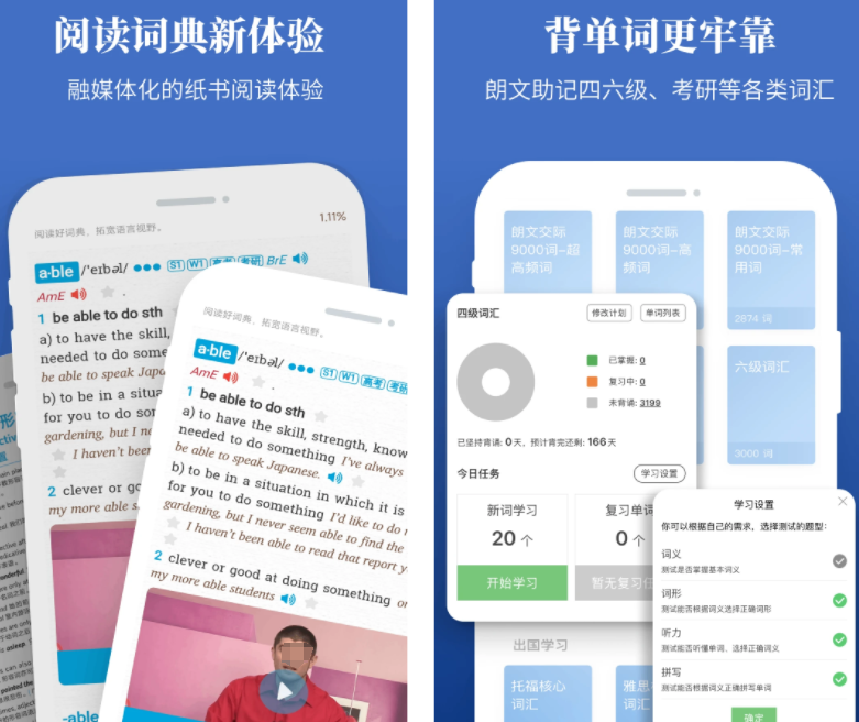 这款软件是国内比较有名的学习英语单词软件,主打帮助用户生动有趣学习英语单词,拒绝枯燥死记硬背单词。软件有大量影音视频的英语原声例句,帮你一边听读原声学单词,支持对英语单词进行扫描点读,让你学习事半功倍。