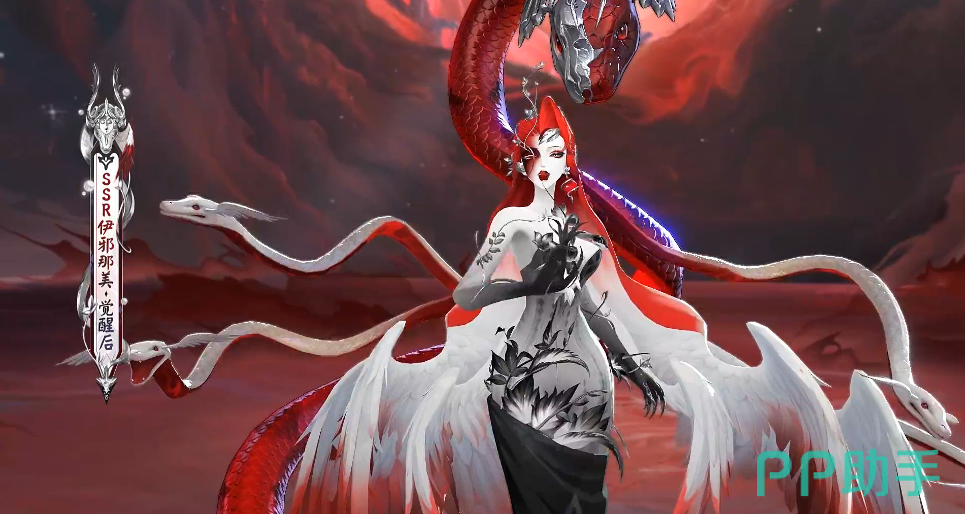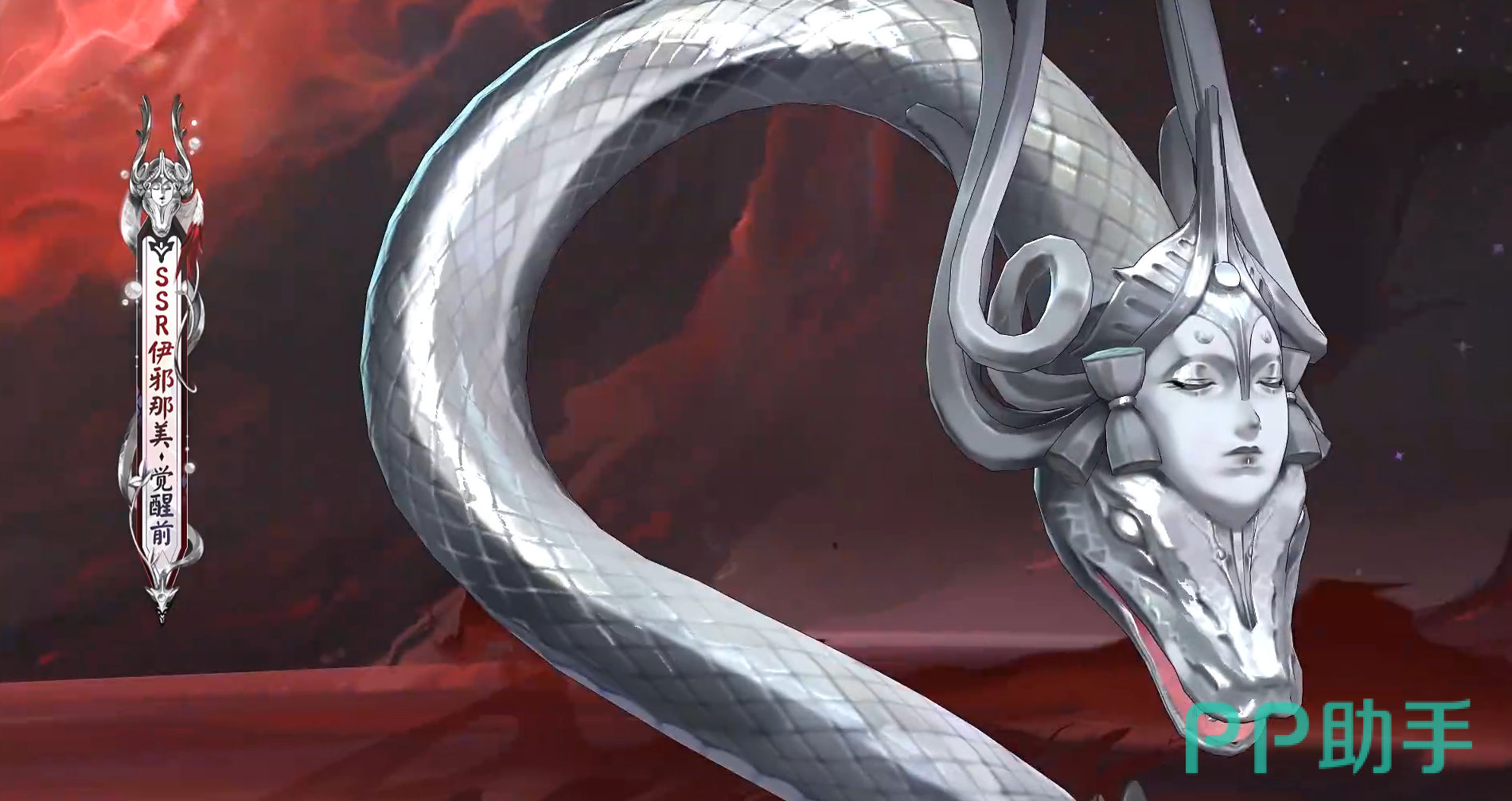 而且该角色在觉醒前后的造型反差也是比较大的,在觉醒之前是以银灰色蛇的形象展示出来的,在觉醒之后化身为人,整体就是一个御姐的造型了,而且拥有一头火红色的头发,并且还是SSR品质的式神,技能方面也是让人万分期待了。