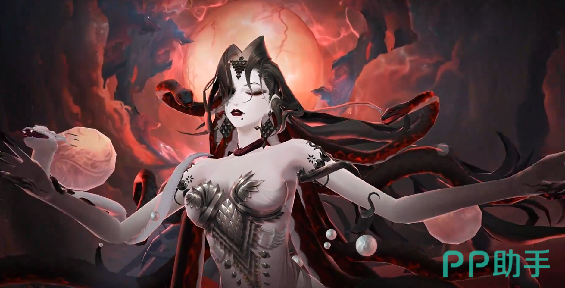 在角色的造型设计方面也是可以看出花了心思的,一眼蛇蝎美人的形象,有一种和美杜莎类似的感觉,主色调就是以黑白为主的,整体的造型都是偏向于幽暗那种类型的,将女王整体的气场凸显的淋漓尽致。