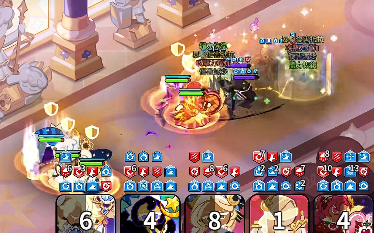 配料管理方面,建议各位玩家们优先以冷却或者以累加攻击力为主。如果想打快攻的话,建议增加攻击力为优先级。本身第一波高额的伤害加成以及固定百分比例的输出效果,加上无视伤害抗性的穿透能力,再加上我们的全输出配料,可以让其在第一波的时候打出最高的爆发。同练度情况下秒人的话也并不是没有可能,是PVP当中的真神饼干。