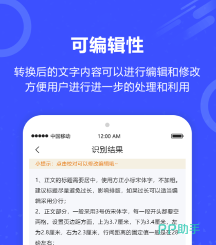 通过这款软你可以拍照上传你所需要的文件和各种证件等,手动的划分识别区域,相应的文字和内容就可以轻松的获取,无限的编辑不会有任何的限制和捆绑设定,帮你轻松的完成手里的工作。