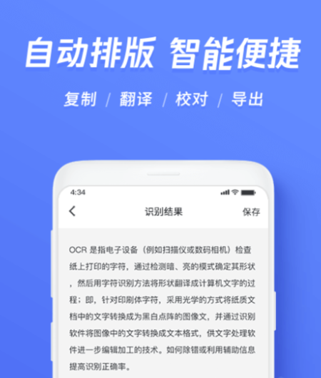 这是一款免费的扫描应用软件,不论是照片,书籍还是名片等都是可以通过ocr技术帮你快速的识别出来,另外还带有翻译的功能,给你的工作节省了大量的时间,自动的排版免去手动的麻烦。