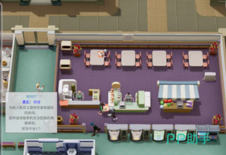 在这个游戏中,咖啡厅是比较重要的一个存在,因为每次饮用咖啡可以提升病人的幸福度,这样对于病情的好转和权愈可以带来很大的帮助作用,并且咖啡厅也不单单是让玩家引用咖啡的一个地方,在这里可可以靠墙摆上咖啡机,糖果机,并且在旁边设置上水池和洗手液,有了这些基础的设施之后,玩家就可以有更加良好的就诊体验。