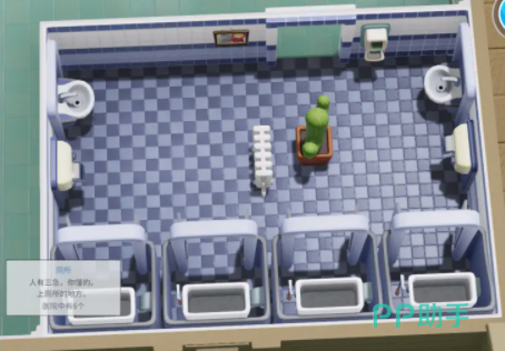除了咖啡厅之外,还需要设置一些像厕所这样的公共区域,在这里玩家可以分别设定不同职业和性别的专用厕所,不管是对于病人还是医生来说都是非常便捷的,除了最基础的如厕工具之外,还需要在场景中放置洗手液烘干池还有垃圾桶这样的基础物品,面积不用太大,基本上3×3或者4×4就已经足够使用,在厕所中还需要放置一些像仙人掌这样的绿植,能够美化环境,提升整体的数值。