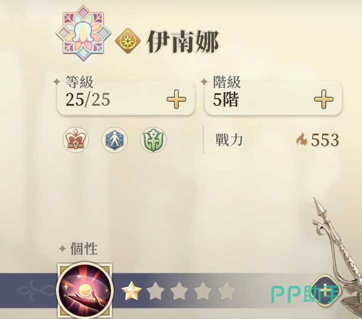 这位角色是一位光属性的辅助角色,职业是特殊职业王女。目前伊南娜的可选阵营比较多,有伊利亚,列阵如林和铃兰之剑。她的主要定位是治疗以及召唤。她因为阵营的原因所以只能在T0的位置,如果伊南娜本身的阵营的是在骑士联盟的话,那么她的评价还会再提升一个档次。伊南娜本身的职业特性名为伊利亚的明珠,她可以在战斗之初召唤出一名王女亲卫,同时在回合结束以后会给三格内生命值最低的一位友军进行治疗,治疗的数值是魔攻的20%。