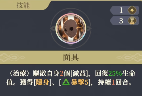 科尔强大的地方总共有三点,第一点是连击,她可以对敌人造成3次连击伤害,并且在此期间暴击率会得到提升。第二个是她能驱散自身2个DEBUFF,并且回复生命值,在回复完之后还可以进入隐身状态,并且提高暴击率。第三个则是后期他的背击一定会造成100%的伤害,同时还可以无视援护。