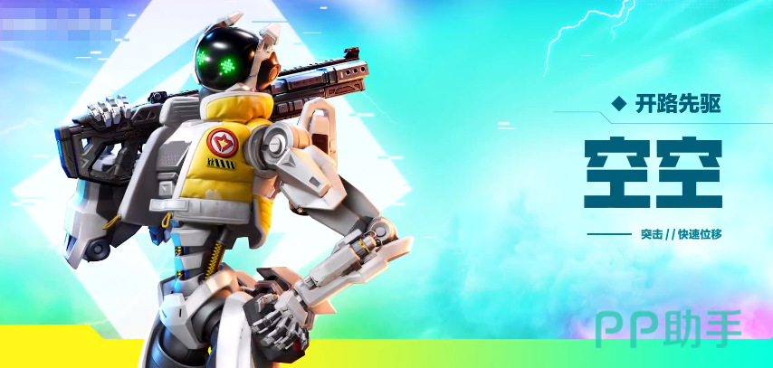 空空:它是一个机器人外形的突击英雄,有着很强的侦查与跑图能力,被动可以通过接入内网来提前获悉下个安全区的位置,在高端博弈中能够充分抢占先机,战术技则是一个飞爪,朝建筑或者敌人发射都可以,它能让你迅速接近飞爪落点,大招则是创造一条索道,索道能够帮助你进行长距离的位移,滑索途中还可以对下方敌人进行射击。