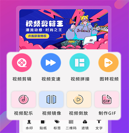 软件支持大家去针对视频配乐以及倒放,包括制作GIF图片也是能轻松的完成,除了常见的尺寸裁剪以外,还支持用户去针对片段来进行裁剪,像视频的合拍以及水印添加等功能也都会给到大家的哦。
